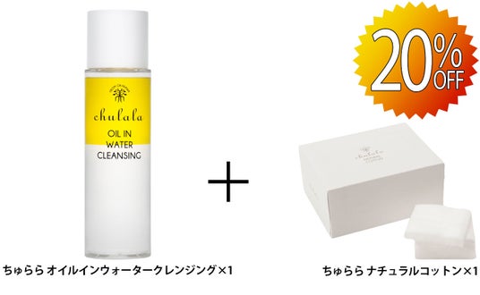 2回目以降:ちゅらら オイルインウォータークレンジング×1、ちゅらら ナチュラルコットン×1 税込3,942円(※通常価格の20%OFF)