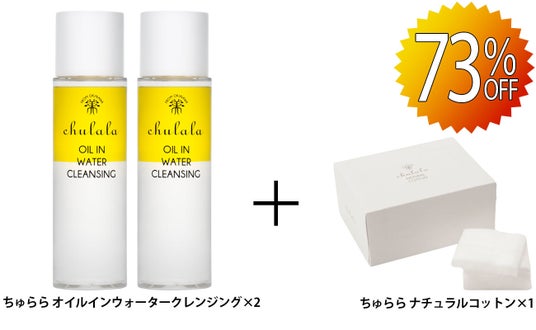 初回:ちゅらら オイルインウォータークレンジング×2、ちゅらら ナチュラルコットン×1 税込2,464円(※通常価格の73%OFF)