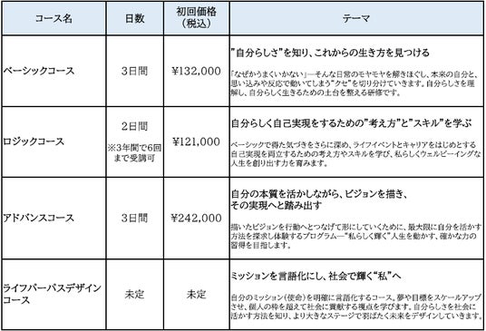 女性一人ひとりが自己肯定感を高め、自立したキャリアと人生を生きるためのプログラムで、段階別に全4コースで構成されています 。