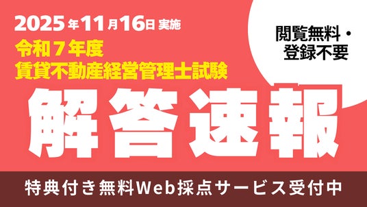 TAC株式会社では11/16(日)に実施される「令和7年度 賃貸不動産経営管理士試験」の予想正答番号、難易度などをお伝えする『解答速報会』を同日19:00からYouTubeライブにて開催いたします。また、『解答速報』をTACのWebサイトにて公開いたします。さらに、本試験の解答をWebで登録することで、精度の高い得点分析結果を閲覧できる『データリサーチ』を実施いたします。