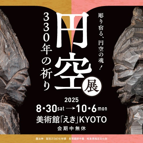 本展は、円空没後330年を記念し、今も伝え継がれる円空像の中から、関西初公開を多数含む優れた像を厳選して紹介いたします。円空彫像のはじまりとされる自らの悟りの境地を追い求めた<上求菩提(じょうぐぼだい)>と、晩年の庶民を仏の道へ導き救済をめざした<下化衆生(げけしゅじょう)>で構成し、円空の信仰と布教の変遷を、躍動する鑿(のみ)使いで表現されたさまざまな祈りのかたちでたどります。