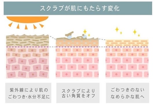 ・大きさの異なるシュガーとトウモロコシ穂軸のスクラブ粒子が生み出すマッサージ効果と、洗い上りにも余韻が残るバニラビーンズ由来の温感効果でくすみ知らず!