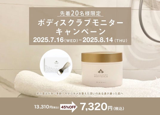 株式会社シティコミュニケーションズ(本社 :横浜市神奈川区 代表取締役社長:三田 大明)が運営する代官山のスパ「SPA DAMAI(以下、「ダマイ」)」の公式オンラインストアにて、2025年7月16日(水)から8月14日(木)までの期間、巡りとエイジングケア※に着目したボディスクラブモニターキャンペーンを実施いたします。