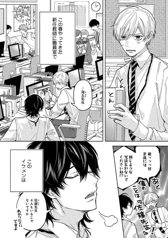 受:佐藤千鶴(さとう ちづる)… 平凡だけど一生懸命な教師。海丘にほだされがち。