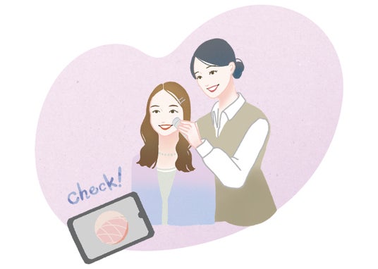 3:角層チェック水分・油分・キメを約10分でチェックし、美肌のカギとなる「角層」の状態に合わせた乳液を提案いたします。