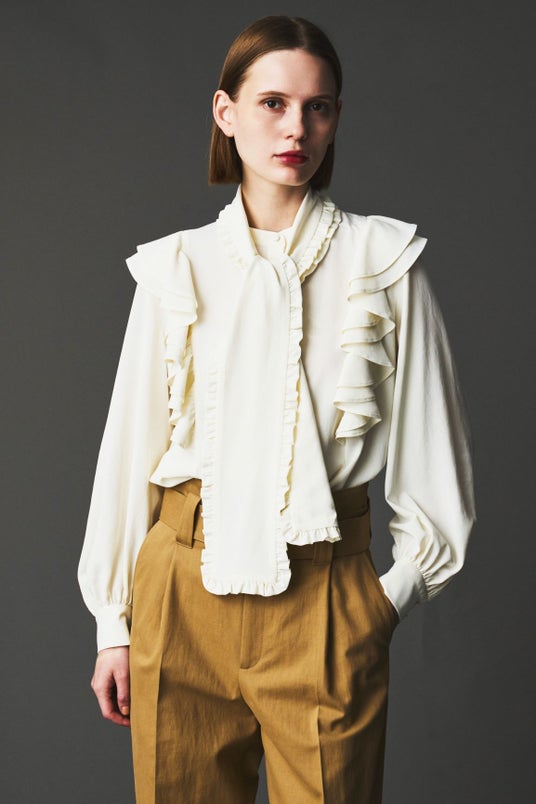 「AUBRIOT(オブリオ)」は “10年後も変わらず良いと思える服”をコンセプトに、タイムレスな魅力を感じるコレクションを展開。2025秋冬シーズンは、Bourgeois Classic(ブルジョワ・クラシック)をキーワードに、映画「昼顔」のカトリーヌ・ドヌーブが魅せるエレガントでセンシュアルな佇まいと、1970年代のフレンチシックな装いから着想を得たコレクション。オブリオのシグネチャーカラーであるグレーを筆頭に、ディウェアにリュクスなアクセントを与える繊細なフレンチレース、グラマラスなファーコート、ラメジャガードやサテンの鈍い煌めきを自在に組み合わせて愉しむ洒脱なフレンチシック・スタイルの提案です。