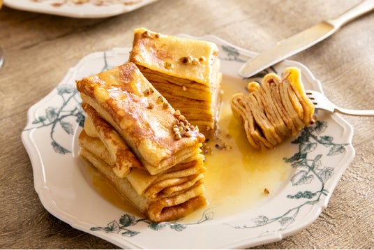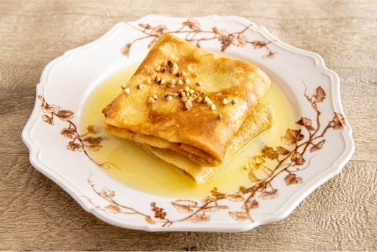 もちもち食感の生地にたっぷりのバターと蜂蜜がじゅわっと染み込む香り高いシュガーバタークレープ。食感のアクセントに蕎麦の実を添えて。