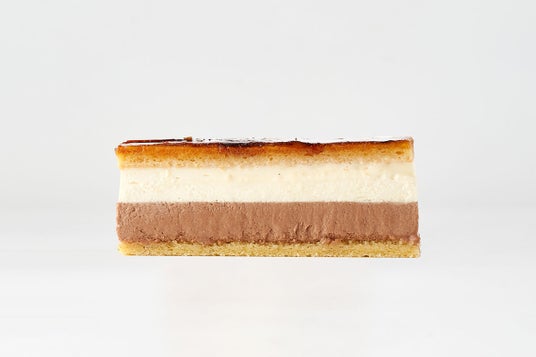 香ばしいナッツと2種類のチョコレートを使った濃厚なムースに、バニラが香るなめらかなクリームを重ねました。表面を香ばしくキャラメリゼしています。
