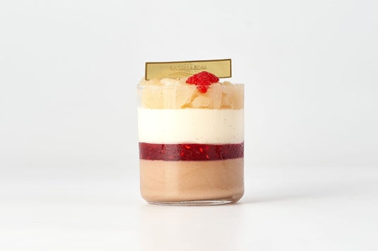 瑞々しい洋ナシのコンポートとジュレ、甘酸っぱいラズベリーコンフィチュールに生姜がほのかに香るなめらかなミルクチョコレートムースを合わせ、奥行きのある味わいに仕上げました。