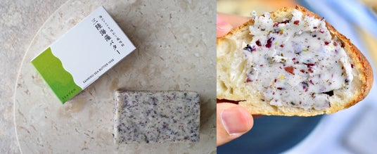 三陸沖で獲れるまつも・ダルス・あおさ・ワカメの4種の海藻を練りこみ、岩手県野田村で4日間手仕込みで作られた「のだ塩」を加えた、日常の食卓をさらに美味しく仕上げてくれる海を感じるクセのない口当たりの良いフレーバーバター。