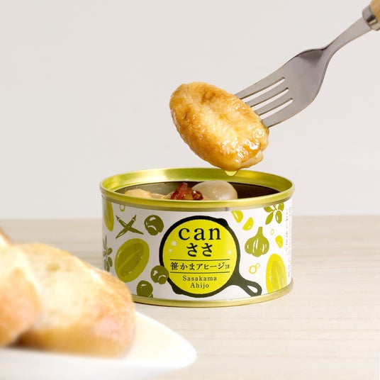 自慢の笹かまぼこを香り豊かなアヒージョに仕立て缶詰にしました。また、白ワインに合うように秋保ワイナリー(宮城県仙台市)にも監修をうけています。オリーブオイルの風味が魚の美味しさを引き立てており、食感も楽しい商品です。