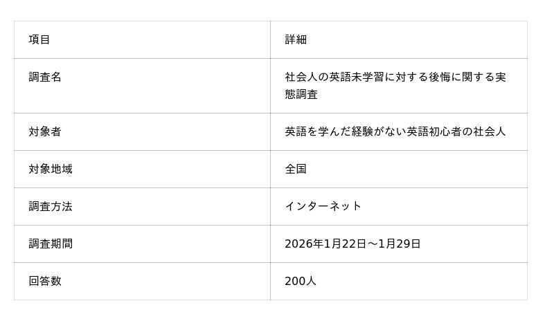 そこで今回は、英語を学んでこなかった社会人を対象に、その後悔の有無や学習しなかった要因について調査を行った。