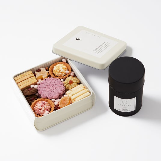 【A】やなぎのにわ「お菓子缶」&essence kyoto「ほうじ茶 」セット京都・衣笠に工房を構える菓子店で、ブーケをテーマに誂えたNIWAKAオリジナルのお菓子と、器ギャラリーが手掛ける香り高く仕上げた無農薬のお茶のセットです。