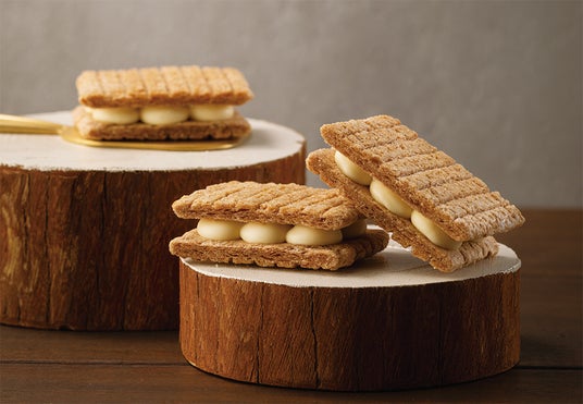 香り豊かなフランス産発酵バターを生地にじゅわっとしみこませ、香ばしくパリッと焦がし焼きしたサクサクの生地。まるで空に浮かぶ雲のようにもこもこなエアインショコラをサンドしました。ひとくちかじれば、発酵バターの贅沢な香りと ショコラのミルキーな風味がお口いっぱい広がります。