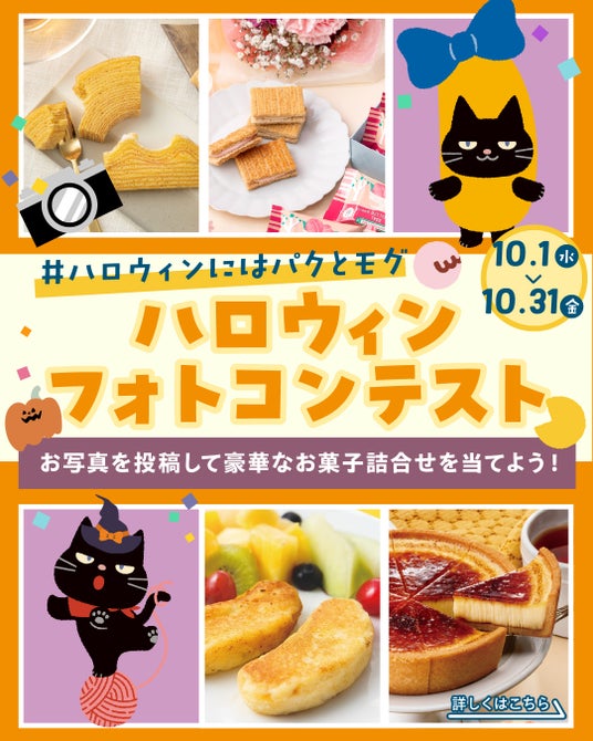 「感謝祭」を盛り上げる“フォトコンテスト”も開催します!「パクとモグ」のお菓子をハロウィンらしくアレンジした写真や、仮装してお菓子を食べている写真など、対象ブランドの商品が入った写真を大募集!