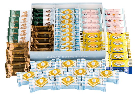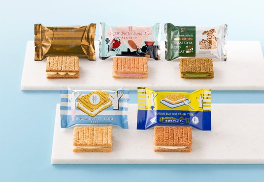 「シュガーバターの木」を存分に楽しめる、5種類もの味が入った『シュガーバターの木 オールスター詰合せ』が期間限定で公式通販に登場です!定番ホワイトショコラサンドはもちろん、なんと4種のエリア限定サンドまで入った『シュガーバターサンドの木』大集合のスペシャルセットです。普段はなかなか食べられない味も、今だけ一度に楽しめちゃうチャンス。ぜひ食べ比べながらそれぞれの美味しさをお楽しみください。