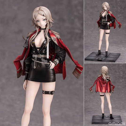 鋭い眼差しでサーベルを腰に斜めに佩く姿を立体化。赤いジャケットには奥行きのあるグラデーション塗装が施され、深いVネックのシャツから覗く胸元の肌が印象的です。タイトなミニスカートは半透明素材によってわずかに素肌を透かし、シルバーのベルトがシャツを引き締めることで繊細な衣服のシワを再現しました。