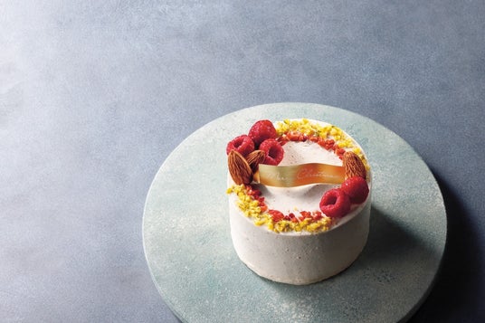 スポンジは白砂糖と小麦粉不使用のグルテンフリーな米粉スポンジを採用。きな粉クリームとこしあんのほか、ベリージュレと苺がアクセントとなって層になったギルトフリーなケーキです。