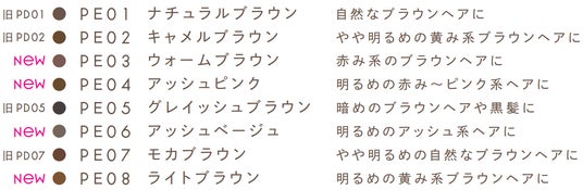 カラーは、ベーシックからトレンドまで揃う全8色展開。これまでの人気カラー4色は引き継ぎつつ、トレンドのアッシュ系や赤み系のカラーを追加し、似合う色が必ず見つかるラインアップとなっております。