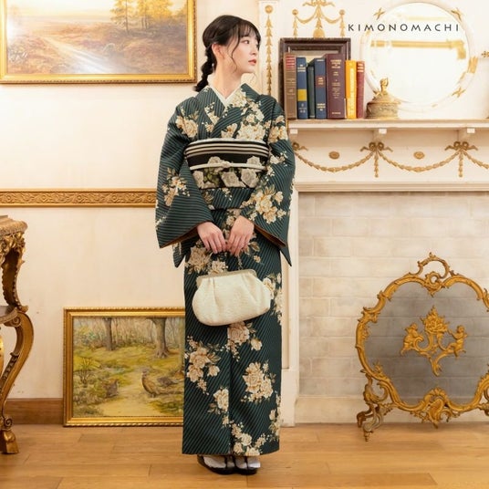 自宅で洗えるポリエステル素材で、気軽にお召しいただけますので、普段着として着物を着られる方にも、着物初心者の方にもおススメです。