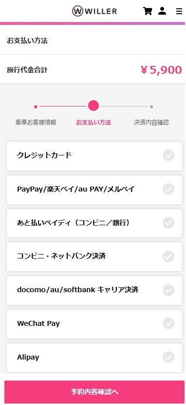 ※支払い方法に関しては、こちら(https://travel.willer.co.jp/guide/payment/howto.html)をご覧ください。