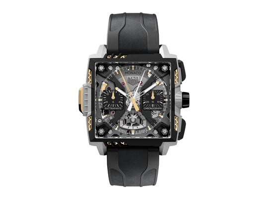 その結果誕生した「タグ・ホイヤー モナコ スプリットセコンド クロノグラフ エア 1」は、あたかも風洞実験でスピードと気流を考慮して設計されたかのように、軽やかで空力的な構造美を備えた外観を呈しています。複数のソリッドゴールド製部品を採用しながらも、総重量はわずか85g。F1(R)の世界に通じる、無駄を徹底的に削ぎ落とした設計思想を反映し、卓越した重量対性能比を実現しています。