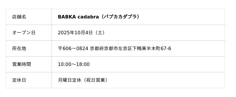 ※「日本初」に関しては2025年9月時点での当社調べ(日本国内における「バブカ専門店」として)