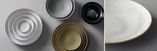暮らしを彩る器を目指して開発した「バーミキュラ テーブルウェア」。ろくろ成形による柔らかな表情をまといながらも、手に取りやすく、使いやすい、日常に寄り添うこだわりの器です。お皿・ボウル・お茶碗・カップなど全27型・4色の豊富なラインナップを揃えました。