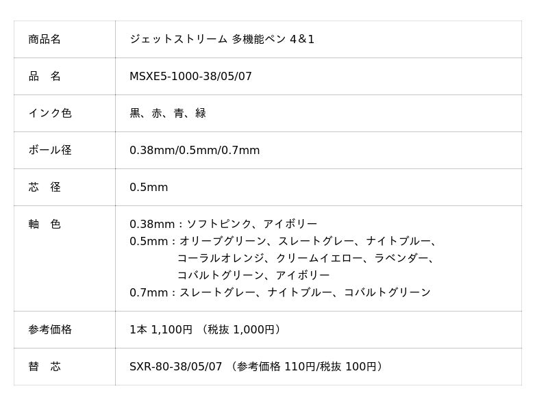 『ジェットストリーム 多機能ペン 4&1』は、5機能を搭載し1本でマルチに使える利便性と、ビジネスシーンからカジュアルな日常まで、さまざまなシーンにフィットするデザインでご好評いただいております。