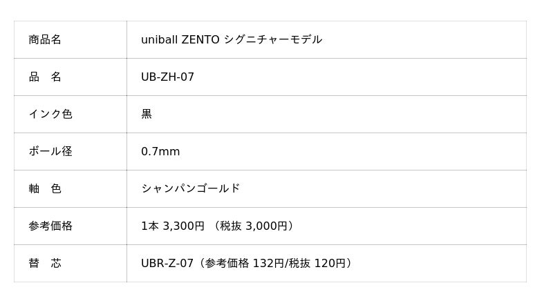 uniball ZENTOのやわらかい書き心地を最大限に味わうことのできる象徴的なモデルのシグニチャーモデル。上品なシャンパンゴールドを加え、上位モデルらしいカラーラインアップとなります。
