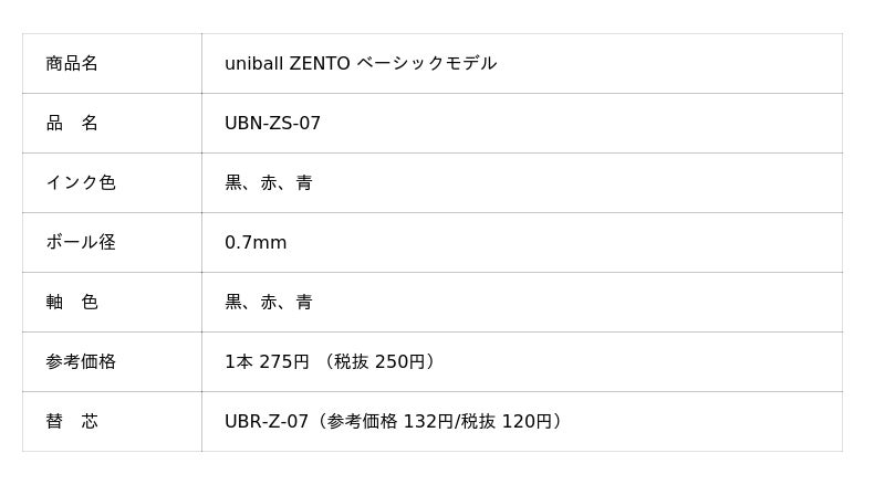 三菱鉛筆株式会社(本社:東京都品川区 社長:数原滋彦)は、「すいすい書ける水性ボールペン」の『uniball ZENTO(ユニボール ゼント)』シリーズより、豊かなインクフローで「かく」ひと時をさらに心地よく感じられる0.7mmボールを搭載した『uniball ZENTO シグニチャーモデル』(参考価格3,300円:税抜3,000円/インク色:黒/ボール径:0.7mm/軸色:1色)、『uniball ZENTO スタンダードモデル』(参考価格275円:税抜250円/インク色:黒/ボール径:0.7mm/軸色:全3色)、『uniball ZENTO ベーシックモデル』(参考価格275円:税抜250円/インク色:黒、赤、青/ボール径:0.7mm/軸色:全3色)を2025年12月23日(火)に発売いたします。