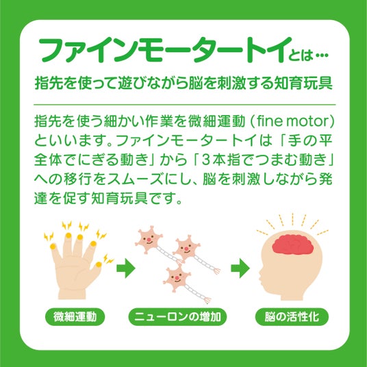 ファインモータートイとは?指先を使って遊びながら脳を刺激する知育玩具です。弊社では年齢に合わせたファインモーター商品を数多く展開しています。