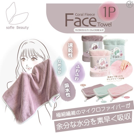 新商品!!ヒロ・コーポレーションから新しいブランドが立ち上がった。【SofleBeauty】マイクロファイバーフェイスタオル1P