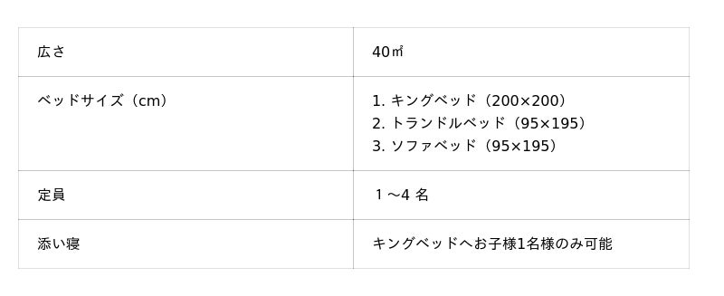 ソファベッド・収納式のトランドルベッドを引き出すことで、最大4名様までご利用いただけます。