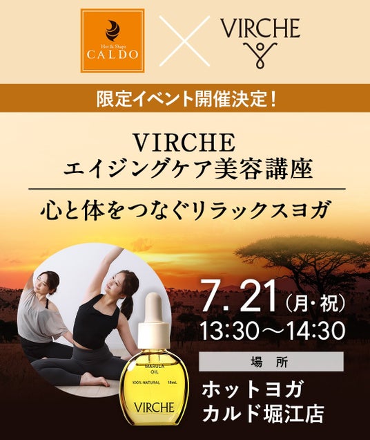 株式会社ヴァーチェ(本社:大阪府大阪市、代表取締役:藤原友香)が展開するエイジングケア(※1)ブランド「VIRCHE(ヴァーチェ)」は、株式会社INSPA(本社:東京都港区、代表取締役:小宮山健二)が運営するホットヨガスタジオ カルド堀江店にて、2025年7月21日(月・祝)に「カルド×ヴァーチェ ヨガイベント」を開催いたします。