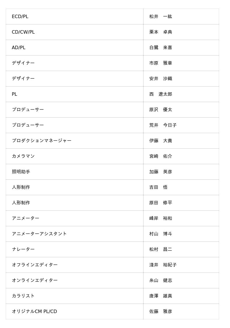 35年前に放送したTVCMのキャラクターやストーリーの「完全再現」を目指すため、撮影や美術制作など、可能な限り過去の作品に携わったスタッフを探して協力を仰ぎました。今作で登場する「スリ-ポリンキーズ」のジャン、ポール、ベルを制作したのは、かつてのTVCMで「スリ-ポリンキーズ」を手がけた人形技師です。35年前の撮影で実際に使用された人形は残っていないので、かつてCM制作に関わったスタッフの中では「前はもう少し大きかったような気がする」という声も聞かれましたが、実際に作り出した人形技師が「同じ大きさだよ(笑)」と自信満々の表情で証言したことで、撮影にゴーサインが出ました。