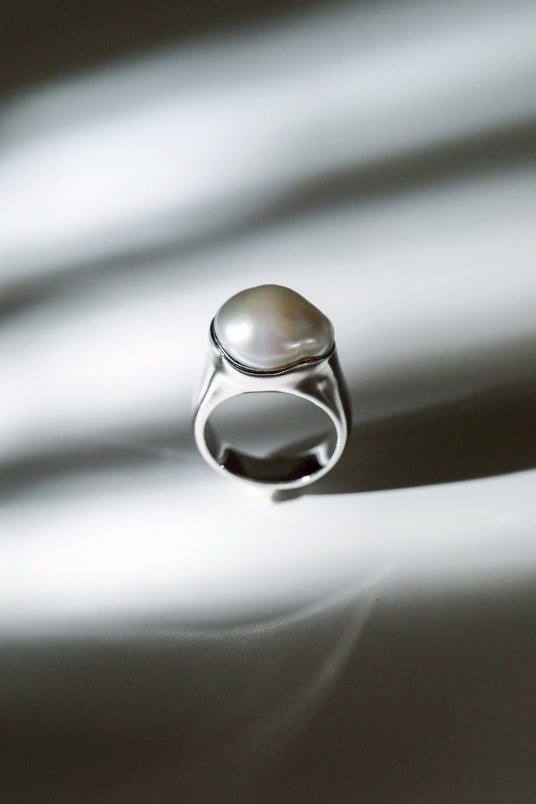 大粒のバロックパールを贅沢にあしらったファッションリングは、手元を華やかに彩り、自然が形づくったユニークなフォルムが光を受けてさまざまな表情を見せます。どの角度から見ても美しく、装いに豊かなニュアンスを添えてくれる、まさにジュエリー上級者にこそお届けしたい逸品です。