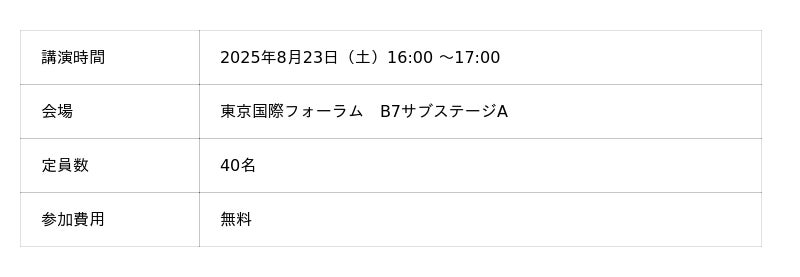 2025年8月23日(土)16:00よりココザス株式会社 安藤 義人 氏 が会場限定セミナーに登壇。東京国際フォーラムB7サブステージA会場
