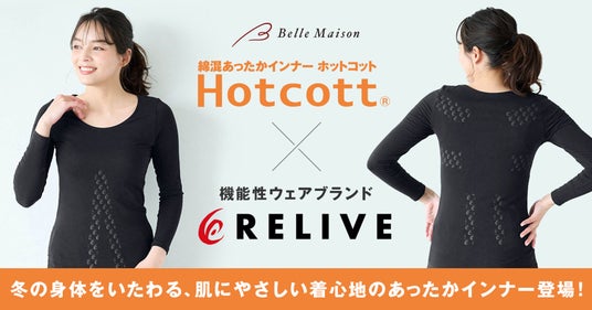 本商品は、千趣会が開発したベルメゾンオリジナルの綿混あったかインナー「ホットコット」と、当社の独自技術「リライブ加工」を組み合わせることで誕生しました。