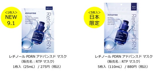 アモーレパシフィックジャパン株式会社(本社:東京都渋谷区)が展開する、自然主義アクティブスキンケアブランド [INNISFREE | イニスフリー] は、25年4月発売以降 売上好調の『レチノール PDRN アドバンスド マスク(5枚入)』から、『レチノール PDRN アドバンスド マスク(1枚入)』 を、2025年9月1日(月)に公式オンラインより順次発売いたします。