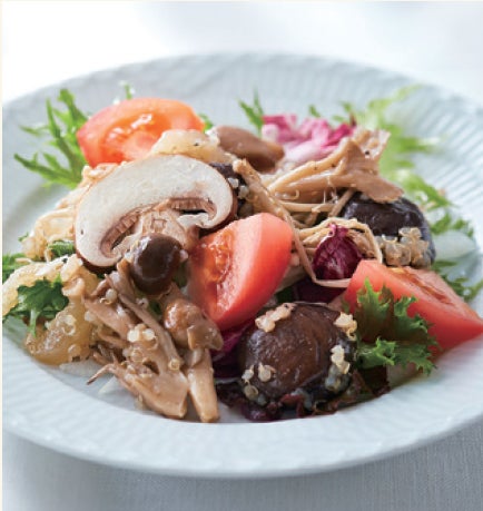 RF1/たっぷりきのこのサラダ風味豊かなきのこをふんだんに使い、丁寧にソテーして、香ばしさと旨みを引き出しました。コク深い醤油ベースの「黒にんにく醤油ドレッシング」で。