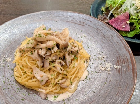 たっぷりきのこのクリームソーススパゲティ(サラダ付き)