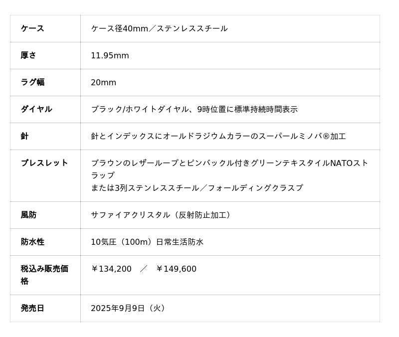 新たに搭載された専用ムーブメントとパワーリザーブ表示が、40mmの機械式フィールドウォッチにさらなる機能美をもたらします