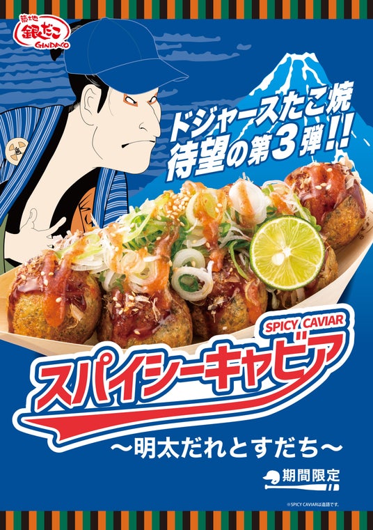 築地銀だこ を国内外に展開する 株式会社ホットランドホールディングス(本社:東京都中央区、代表取締役社長:佐瀬守男)は、ロサンゼルス・ドジャースと協力し、コラボレーションによる第3弾商品 MLB 2025シーズン 『スパイシーキャビア ~明太だれとすだち~』 を、アメリカでの先行販売を経て、2025年9月8日(月)より、全国の築地銀だこ店舗(※一部催事・競馬場・球場等の店舗を除く)にて、期間・数量限定で発売いたします。