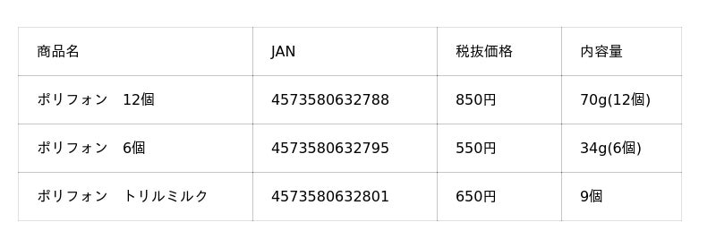 (左)ポリフォン 12個、(中央)ポリフォン 6個、(右)ポリフォン トリルミルク