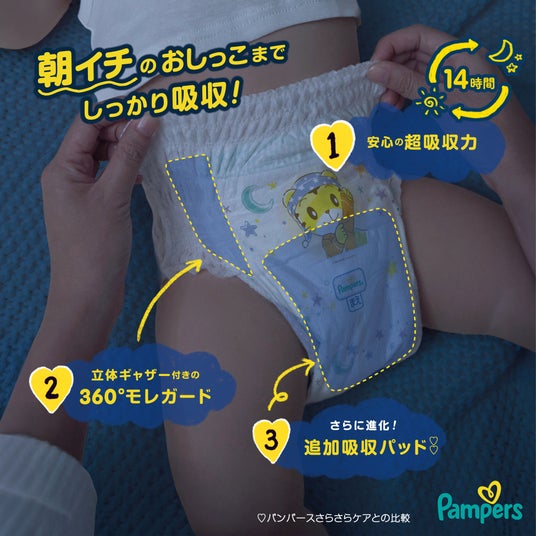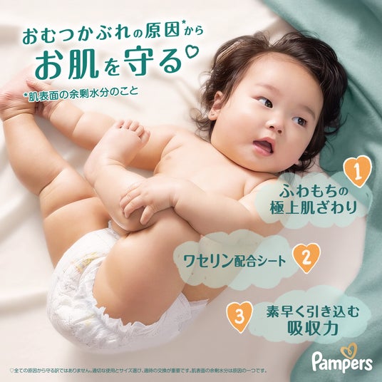 P&Gが行った消費者調査*1によると、おむつの性能は年々向上しているものの、依然として最大のお悩みは“モレ”や “肌トラブル”であり、“夜のモレ・ムレ”に悩まされ、時間のない朝でも、心に余裕を持って“親子ともに元気いっぱいで一日のスタートを切りたい”と望まれていることが明らかになりました。このようなニーズに応え、パンパースは主力3ラインをリニューアル。「パンパースで君は無敵だ」をテーマに、“360°モレ0へ*2”を掲げた「さらさらケア パンツ」、 “おむつかぶれの原因(肌表面の余剰水分のこと)からお肌を守る”「肌へのいちばん* パンツ」、“朝イチのおしっこまでもしっかり吸収する”「おやすみパンツ」を発売いたします。