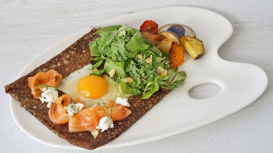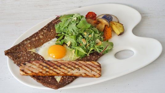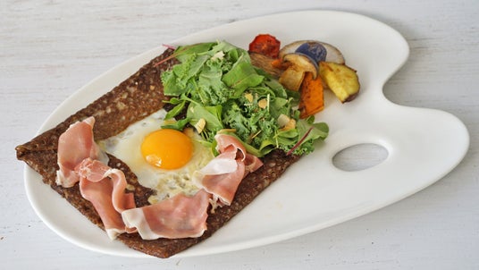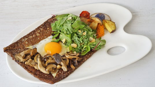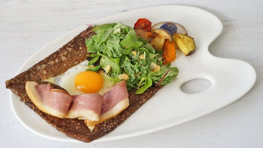 秋ガレットセット・ハーフ&ハーフ(キノコのソテーとトリュフ香るクリーム&スペイン産生ハム“ハモンセラーノ”) ※食材の組み合わせは一例です。