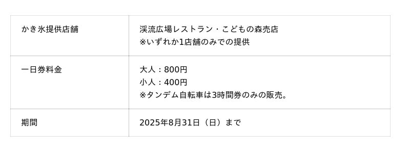 暑い夏に広い園内を歩いて散策するのは大変ですが、レンタサイクルを利用すれば、目的地までスムーズに移動できるうえ、キンキンに冷えたかき氷を楽しむことができます。