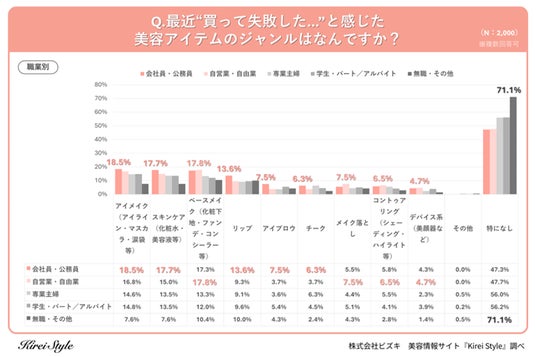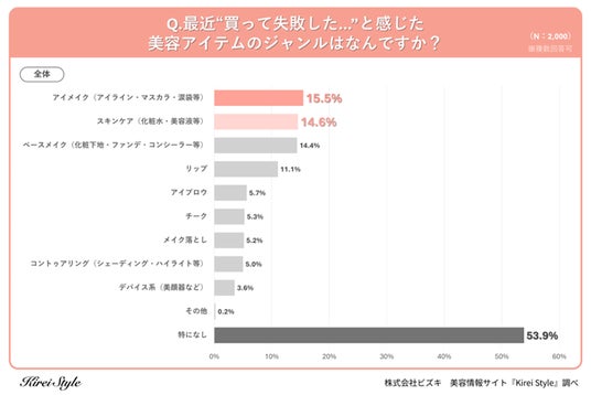 【質問:最近“買って失敗した…”と感じた美容アイテムのジャンルはなんですか?】