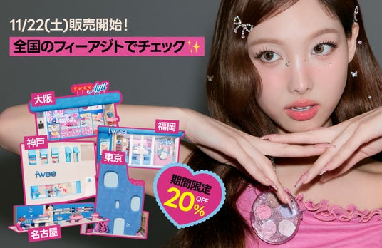 『𝐹𝑒𝑒𝑙 𝑦𝑜𝑢𝑟 𝑚𝑜𝑚𝑒𝑛𝑡』をスローガンに掲げ、日常の瞬間を特別なものにする独自の製品を次々と生み出している韓国コスメブランド。唯一無二なもちっとテクスチャーでスフレのようにふわっと発色する「フィーリップアンドチークブラーリープリンポット」や一塗りでぷっくり光沢リップ*²が完成する「フィー3Dボリューミンググロス」が若者を中心に支持を集めている。今年10月には東京*³、大阪*⁴、名古屋*⁵、福岡*⁶に続く5店舗目の直営店「fwee Agit 神戸*⁷」をオープンさせ、日本のコスメ市場で確固たる地位を築いている。